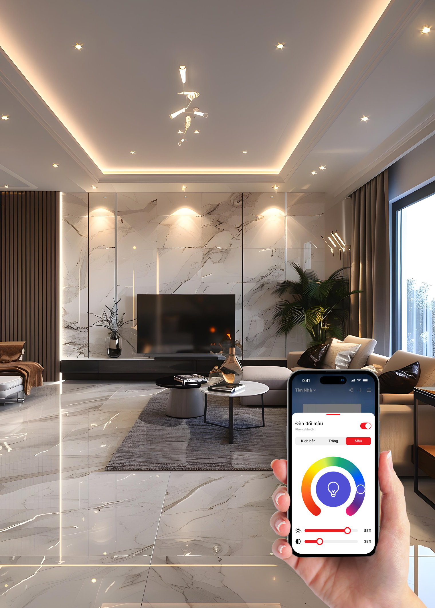 Dễ dàng bật/tắt hoặc điều chỉnh hệ thống chiếu sáng phù hợp với từng thời điểm trong ngày, tạo nên không gian sống thông minh, tiết kiệm và tinh tế.