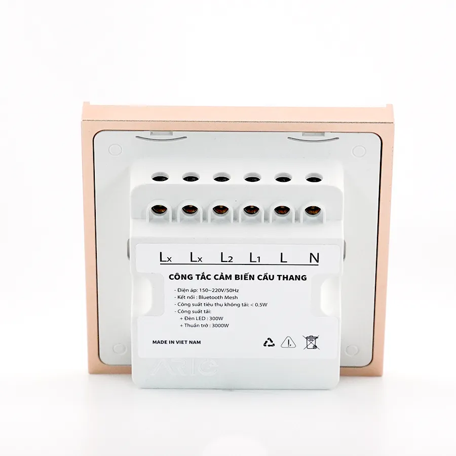 Mô tả chi tiết Công tắc cảm ứng cầu thang tích hợp cảm biến thông minh BLE vuông