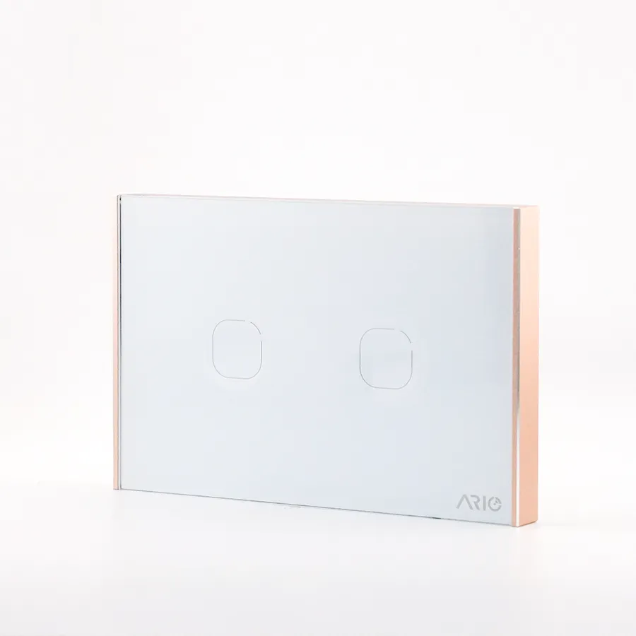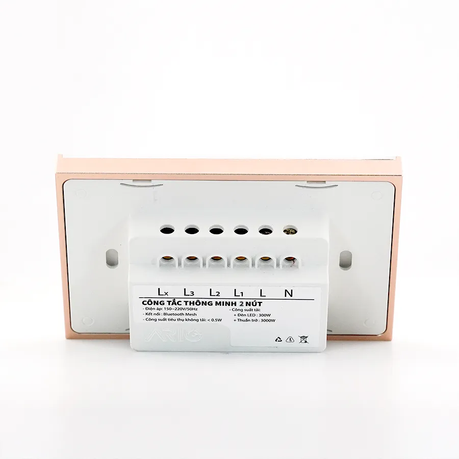 Nhà thông minh | Công tắc cảm ứng thông minh BLE 2 nút chữ nhật, sử dụng chuẩn kết nối BLE Mesh, đảm bảo truyền tín hiệu nhanh chóng và ổn định khi kết hợp cùng bộ điều khiển trung tâm Ario. Công nghệ cảm ứng điện dung giúp thao tác mượt mà, phản hồi tức thì, đồng thời nguồn điện cách ly mang lại sự an toàn tuyệt đối khi sử dụng.