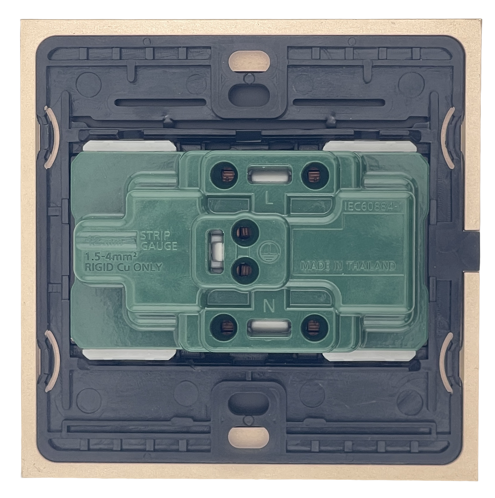 Vỏ nhựa chống cháy, chịu nhiệt cao giúp bảo vệ an toàn cho các linh kiện bên trong. Đặc biệt, phần đế được thiết kế liền khối với độ dày từ 1.2 – 2mm, hạn chế cong vênh khi lắp đặt và siết vít.